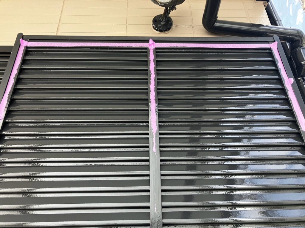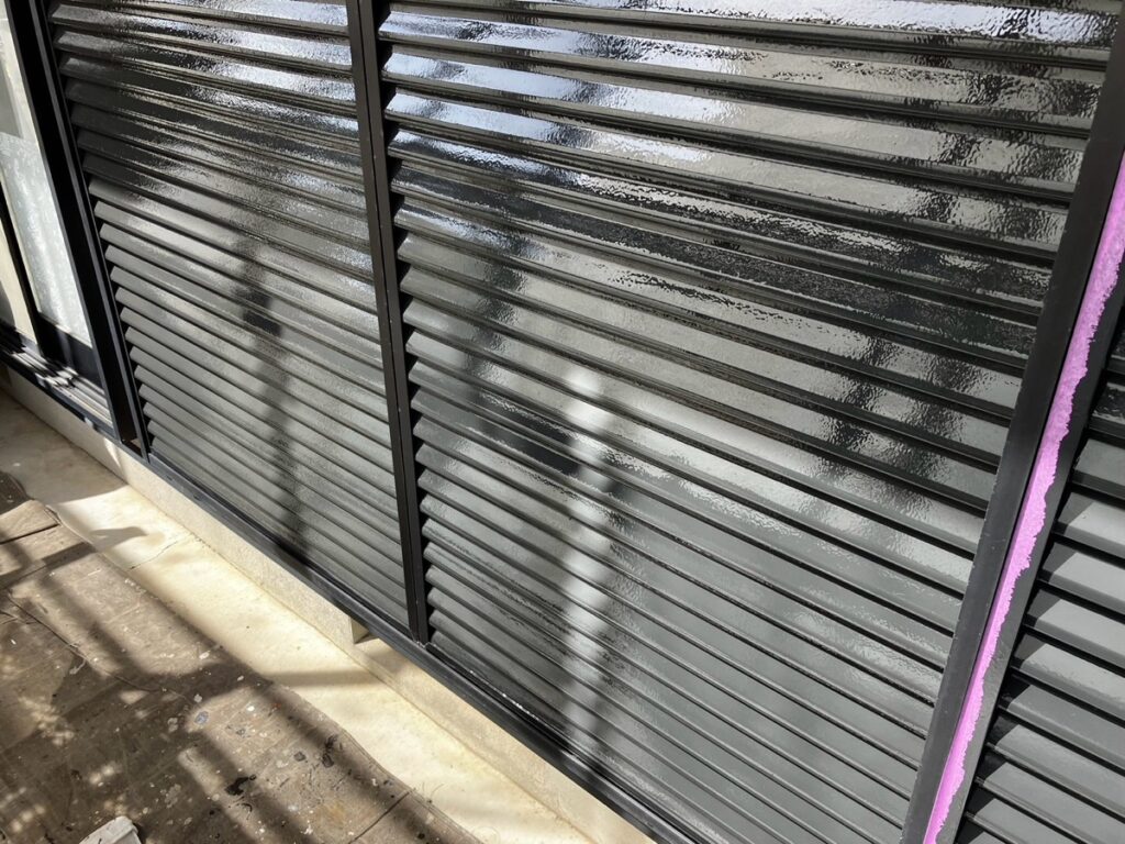出窓やシャッターまわり、バルコニー下など凹凸の多い部分は塗り残しや塗膜の溜まりが出やすいため、細部まで均一な厚みを意識して施工しています。