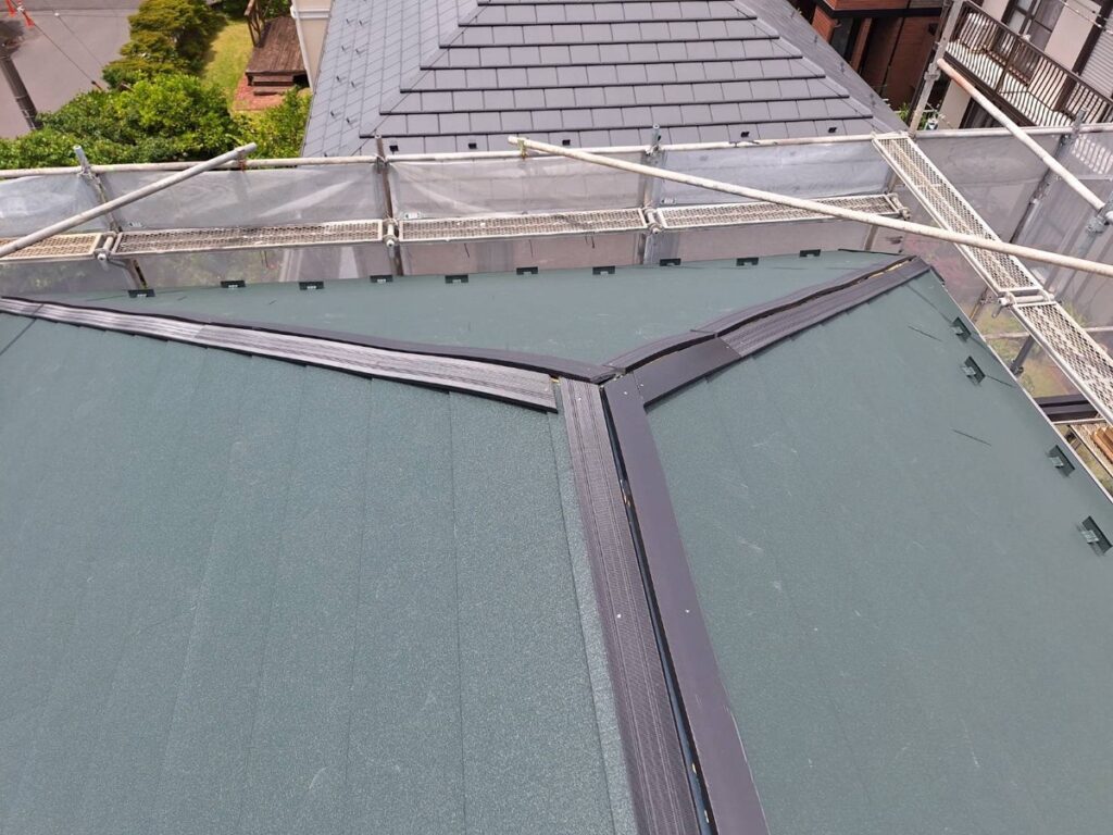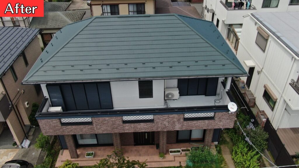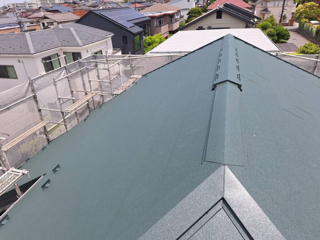屋根材は落ち着いたグリーン系へ刷新。