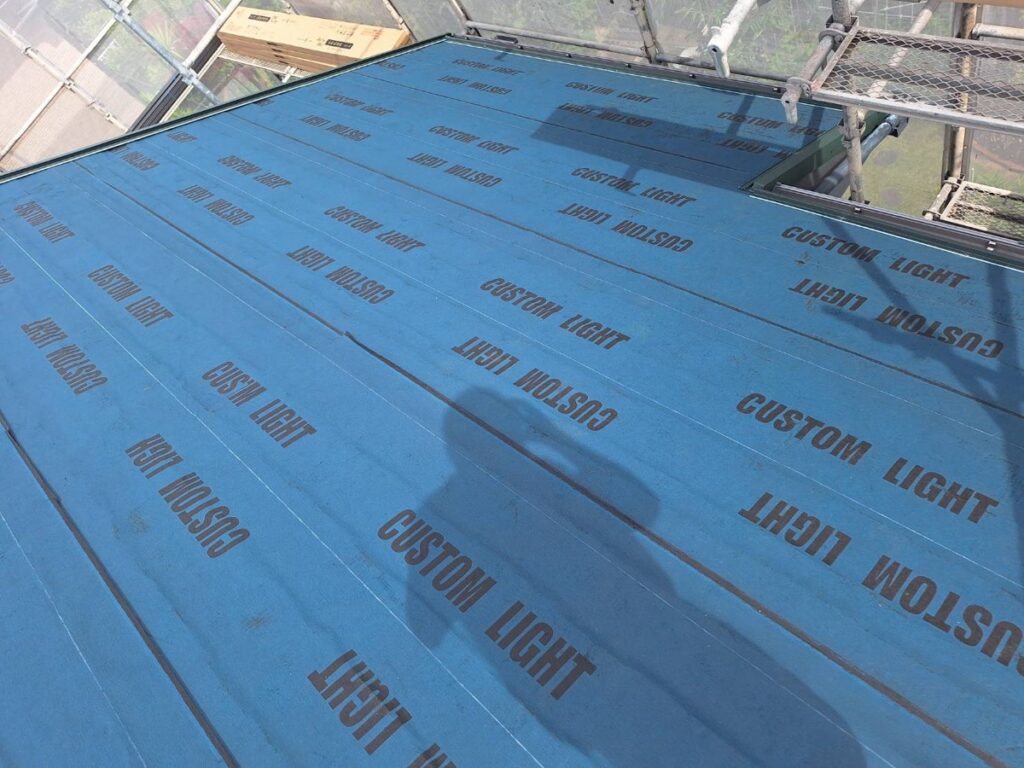 今回の施工では、既存屋根の下地状況を確認したうえで、防水ラインを再構築。